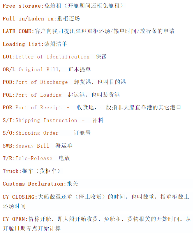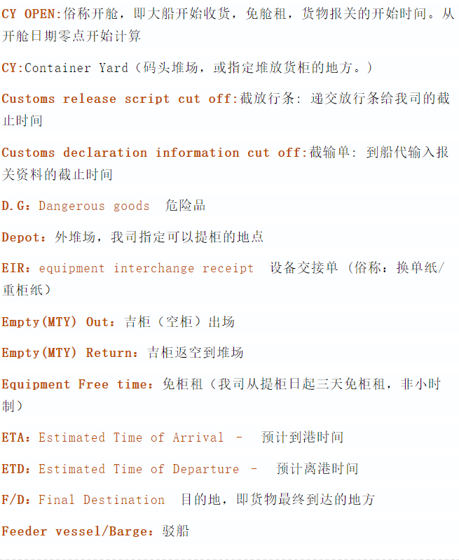 貨代、拖車、報關等相關英語解釋
