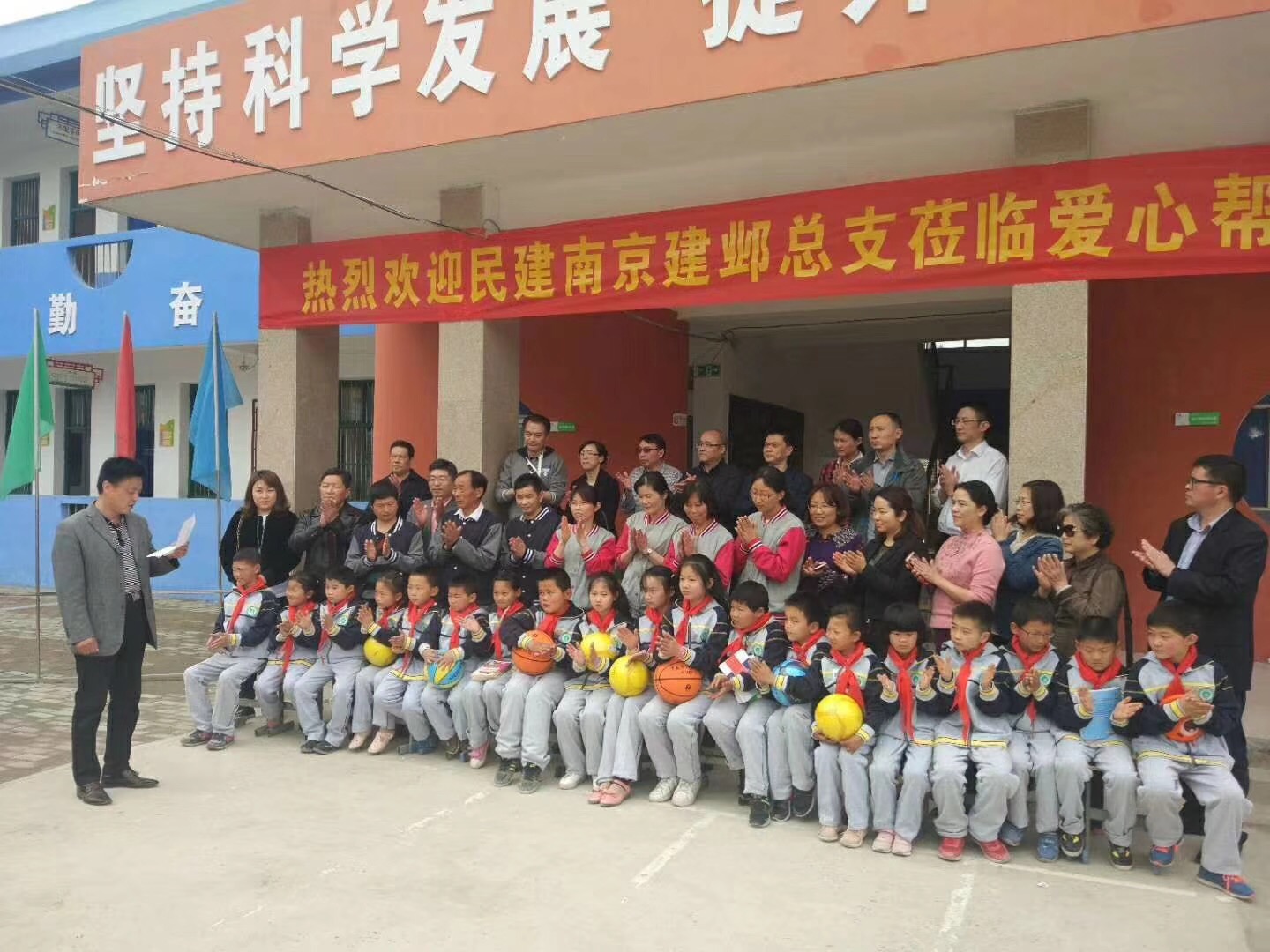 邦農(nóng)會(huì)同民建南京建鄴總支于2018年4月25日,給全體學(xué)生送去了所需的校服,學(xué)習(xí)、體育、生活用品等,同時(shí)與鎮(zhèn)政府領(lǐng)導(dǎo)、學(xué)校代表座談并簽訂捐助協(xié)議,十分圓滿地完成了精準(zhǔn)幫扶。
