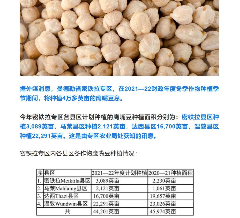 曼德勒省冬季作物鷹嘴豆的種植面積將達到4萬多英畝