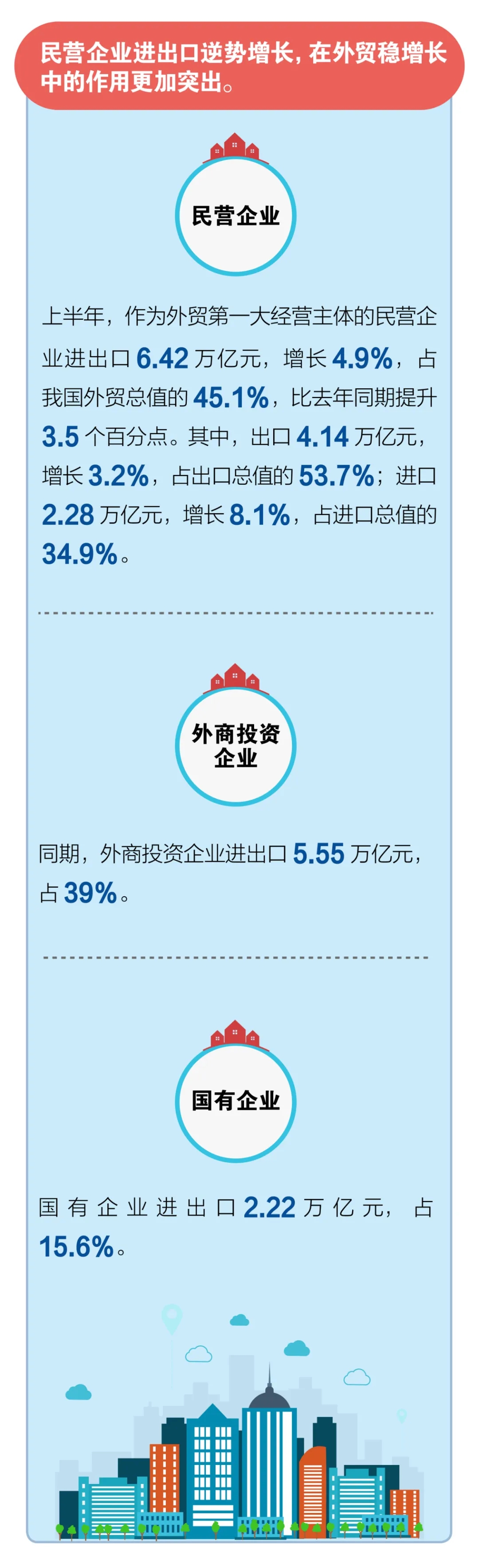 四是促進(jìn)新型貿(mào)易業(yè)態(tài)發(fā)展,積極培育外貿(mào)發(fā)展新動(dòng)能。全面推廣跨境電商出口商品退貨監(jiān)管措施,開展跨境電商企業(yè)對(duì)企業(yè)(B2B)出口試點(diǎn)。鼓勵(lì)中西部、東北等地開展市場(chǎng)貿(mào)易采購試點(diǎn)。今年上半年,我國(guó)跨境電商、市場(chǎng)采購貿(mào)易出口分別增長(zhǎng)了28.7%和33.4%,成為穩(wěn)外貿(mào)的重要力量。