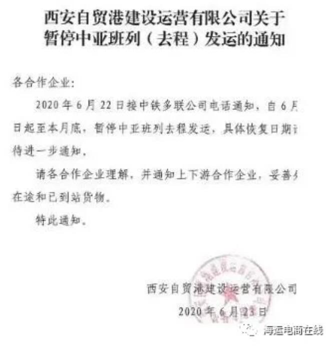 出境中歐班列暫緩發(fā)運(yùn)、中亞班列去程暫停發(fā)運(yùn)、