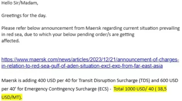 目前已經(jīng)有外貿(mào)人與歐洲客戶就這筆錢誰出的問題產(chǎn)生了分歧,也有歐洲客戶要求供應(yīng)商立刻暫停出貨,直到紅海局勢(shì)穩(wěn)定!