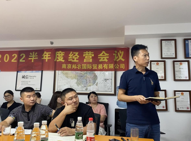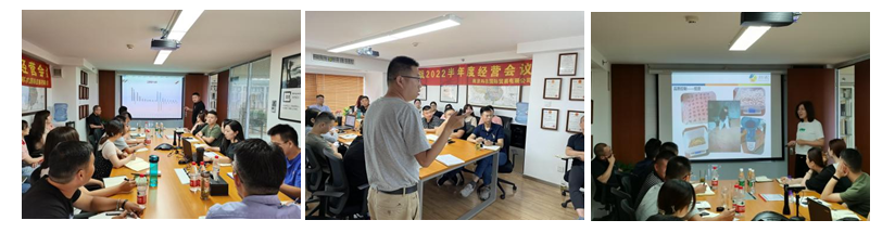 7月23日會議期間,就國內(nèi)貿(mào)易部經(jīng)理潘如江及瀘州、青島、南通、廣州、天津辦事處代表于銷售部進(jìn)行2022年上半年度的銷售業(yè)績、行情走勢、價格分析、采購計劃等,做出了總結(jié)性的計劃及下半年的工作規(guī)劃展開詳細(xì)的匯報。