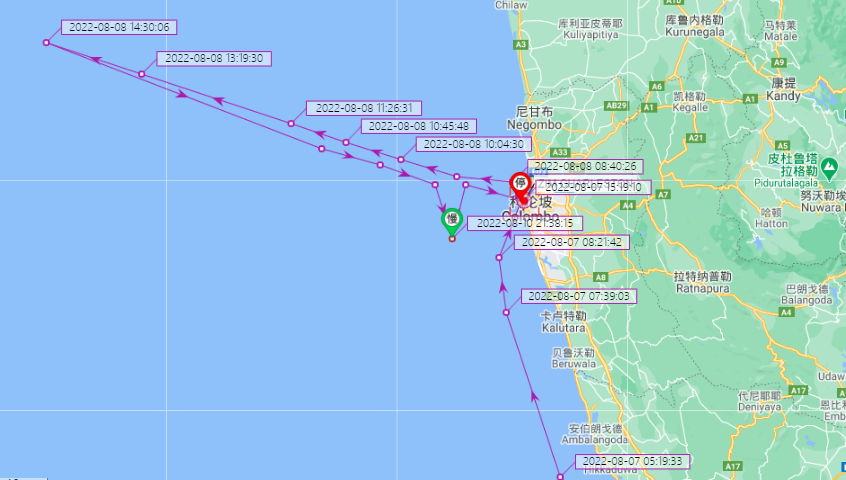 根據(jù)AIS船舶定位顯示,截至8月17日,該船仍在科倫坡港處于錨泊狀態(tài)。原船期預(yù)計19日抵達那瓦希瓦港,目前來看船期已嚴重延誤。