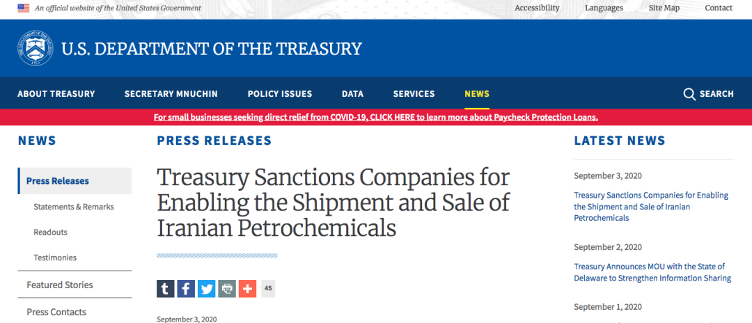 根據(jù)美國財(cái)政部發(fā)布的聲明,美財(cái)政部已將來自伊朗、阿聯(lián)酋以及中國的6家公司列入被制裁實(shí)體名單,理由是這些公司為伊朗的石油化工產(chǎn)品提供運(yùn)輸與銷售渠道,并為之前已被制裁的眾祥石化有限公司(Triliance Petrochemical Co. Ltd,總部位于香港)提供支持。