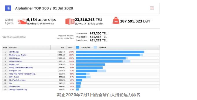 今年上半年,絕大多數(shù)排名前列的集裝箱航運公司已經(jīng)減少了船隊數(shù)量,并從市場上將船舶撤下。由于新冠疫情迫使貨運需求下降,全球12大集裝箱運輸公司中就有11家運力下降,只有一家船公司增加了運力。