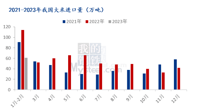 具體來看,2月份我國進(jìn)口稻谷及大米36萬噸,同比減少35.4%,1月至2月我國累計(jì)進(jìn)口稻谷及大米61萬噸,與上年同期相比減少46.1%。