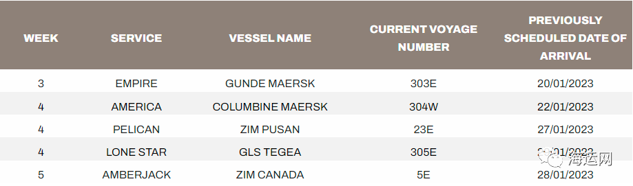 至美西(USWC)服務(wù)以下航次將取消: