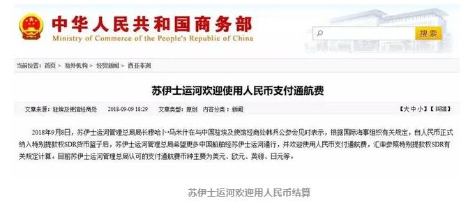 還有的是埃及蘇伊士運河,2018年9月8日起,中國船只通過運河也可以直接以人民幣進行付“過路費”。但人民幣要真正變成國際上“完全自由流通的貨幣”,仍然有很長的路要走。