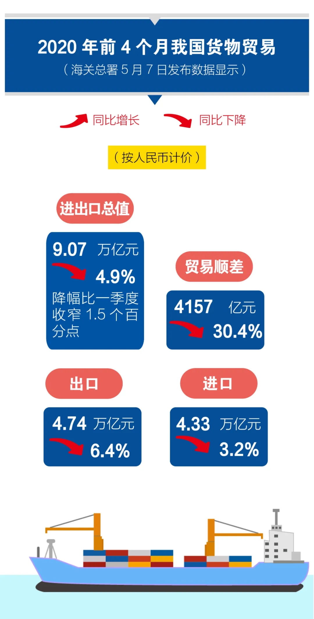 前4個(gè)月我國外貿(mào)進(jìn)出口情況;其中對(duì)美出口下降15.9%