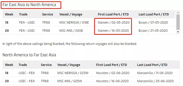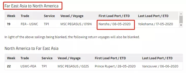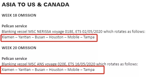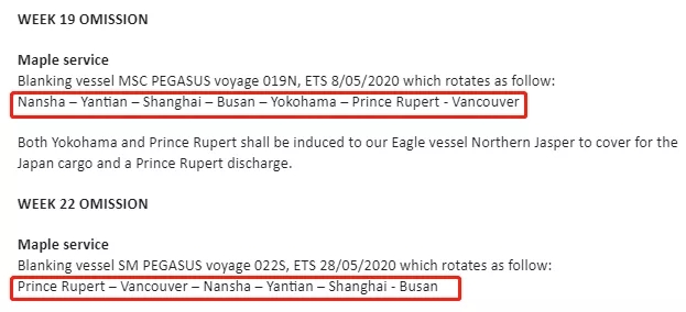 MSC停航調(diào)整計(jì)劃