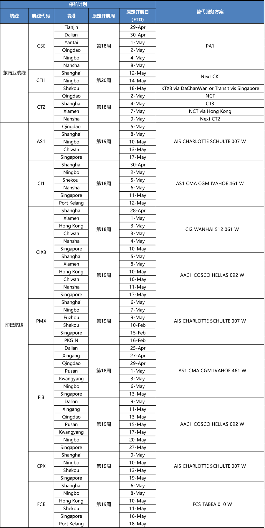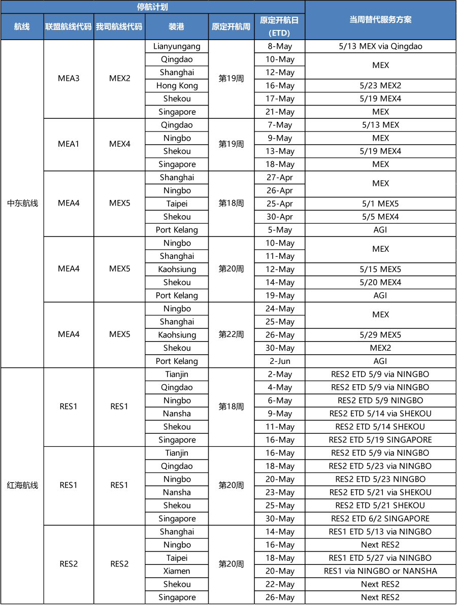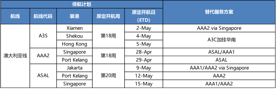 APL4-5月停航調(diào)整計(jì)劃