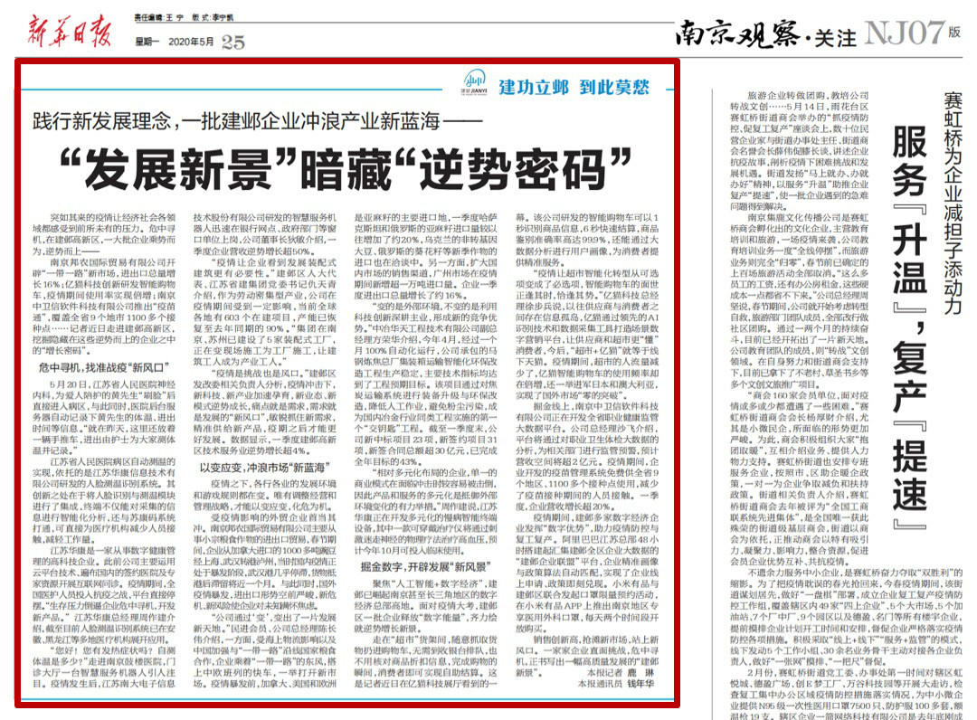 突如其來的疫情讓經(jīng)濟(jì)社會各領(lǐng)域都感受到前所未有的壓力。危中尋機(jī),在建鄴高新區(qū),一大批企業(yè)乘勢而為,逆勢而上。